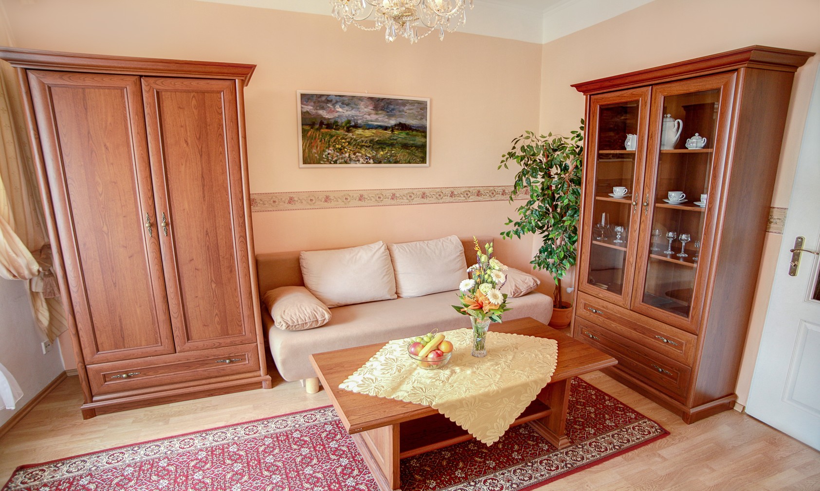 Postel (180 x 200 cm), Wi-Fi (zdarma), TV, balkon, vana, kuchyňský kout, telefon, fén, lednička, pohovka